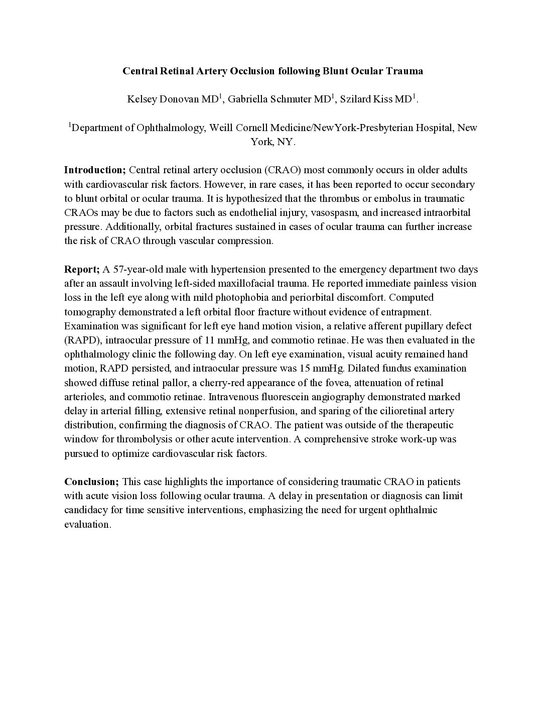 Central Retinal Artery Occlusion following Blunt Ocular Trauma