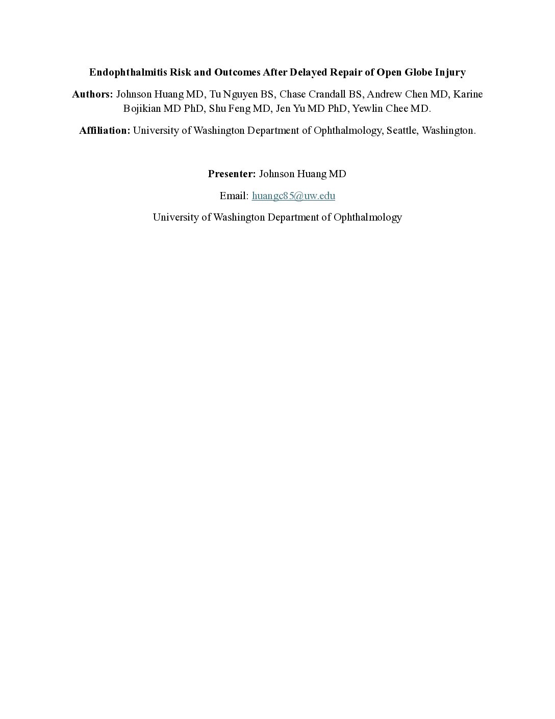 Endophthalmitis Risk and Outcomes After Delayed Repair of Open Globe Injury