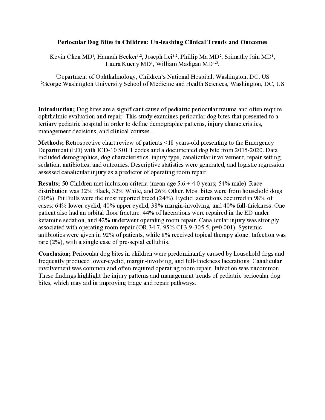 Periocular Dog Bites in Children: Un-leashing Clinical Trends and Outcomes