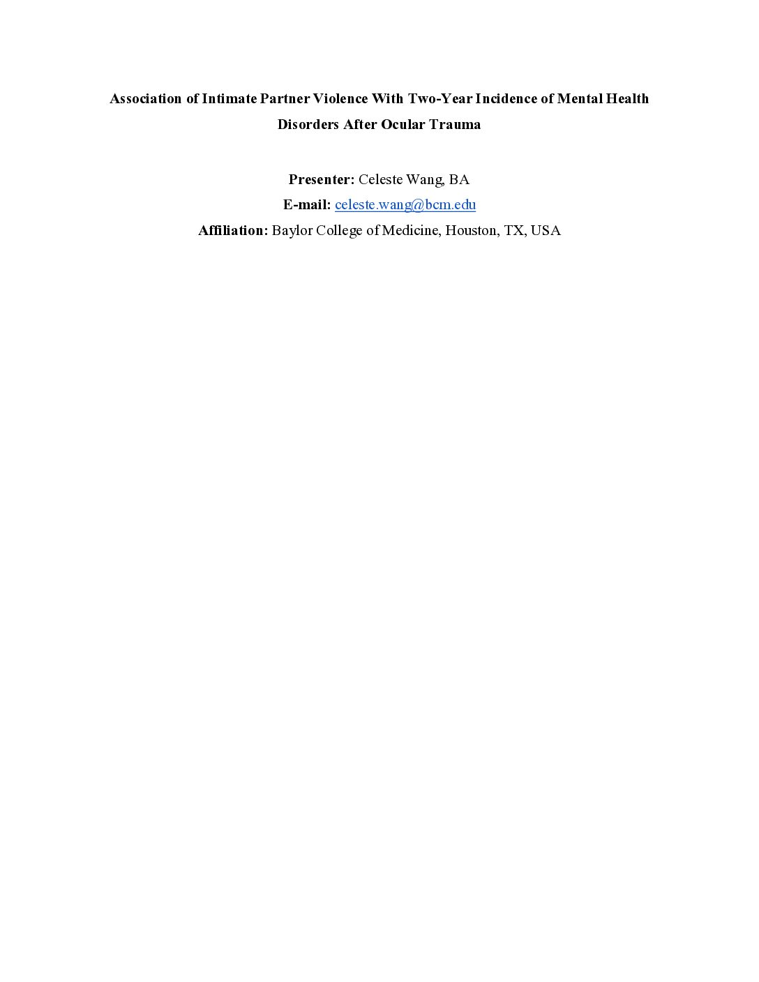 Association of Intimate Partner Violence With Two-Year Incidence of Mental Health Disorders After Ocular Trauma