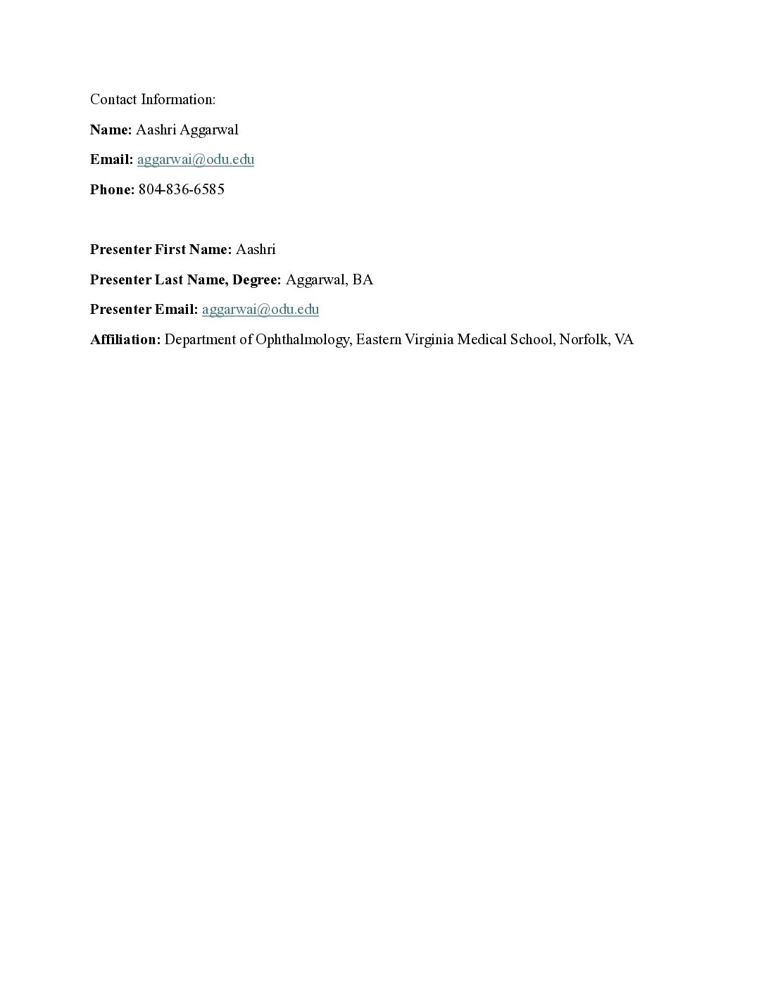 Aashri Aggarwal, BA
