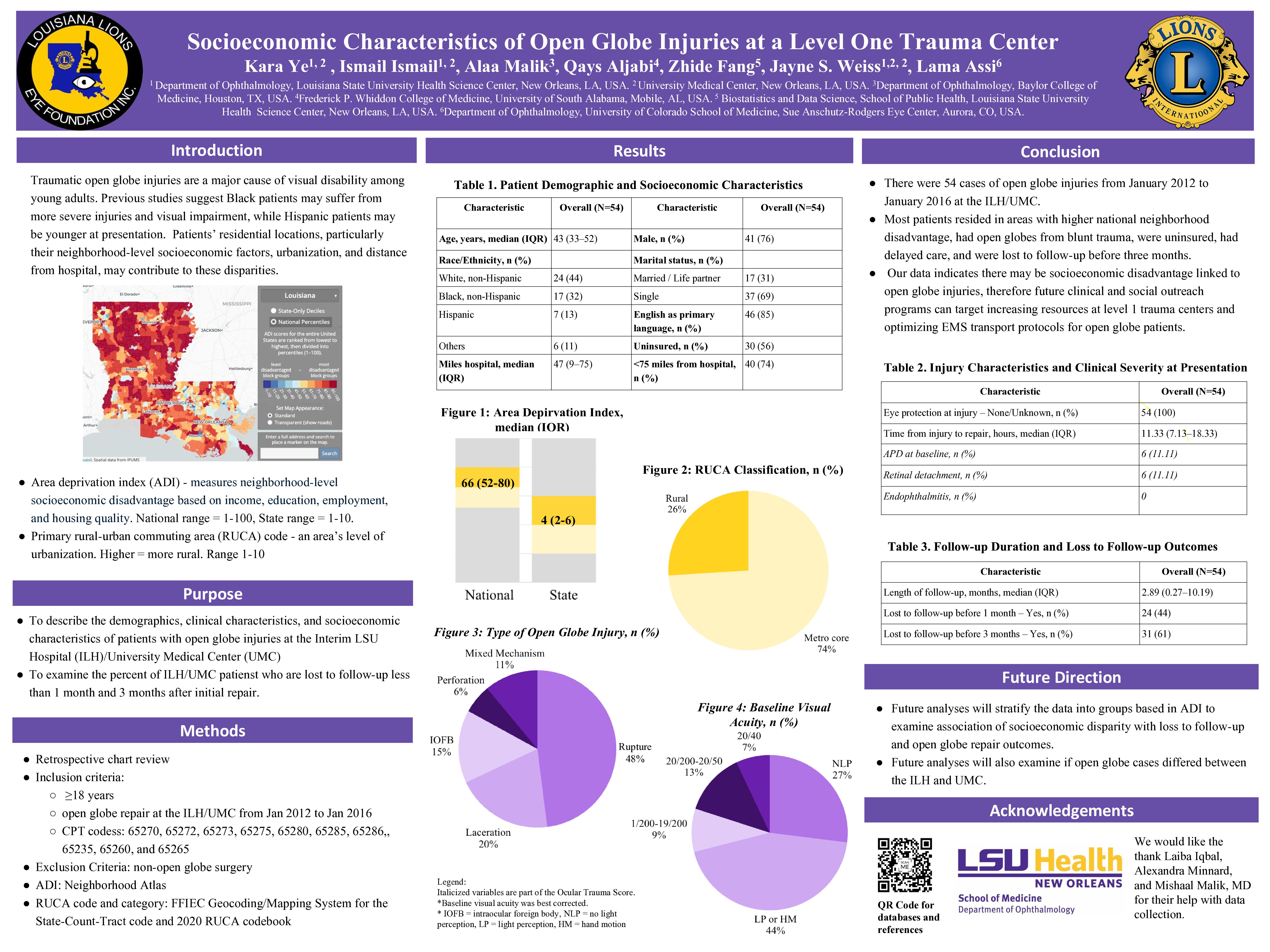 Socioeconomic Characteristics of Open Globe Injuries at a Level One Trauma Center