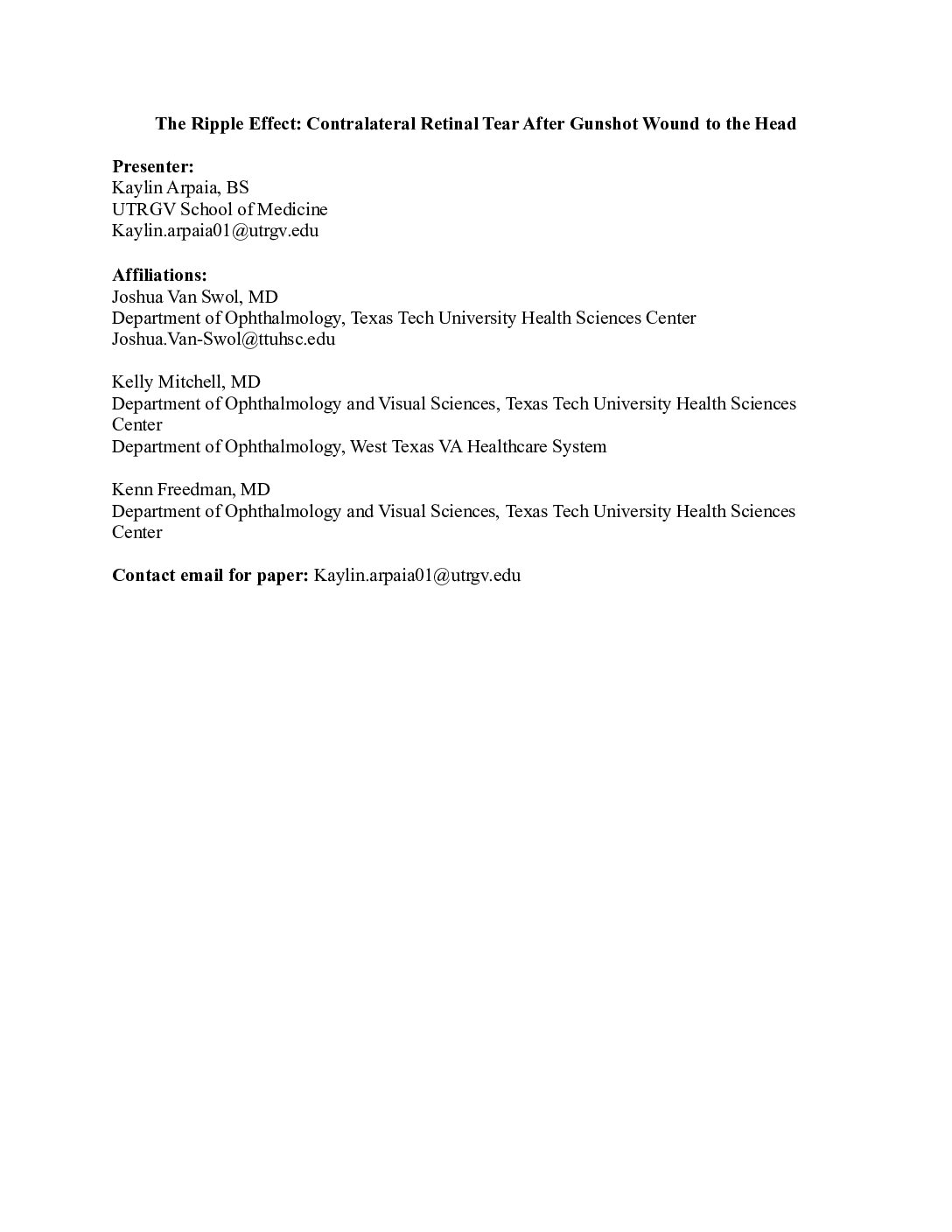 The Ripple Effect: Contralateral Retinal Tear After Gunshot Wound to the Head