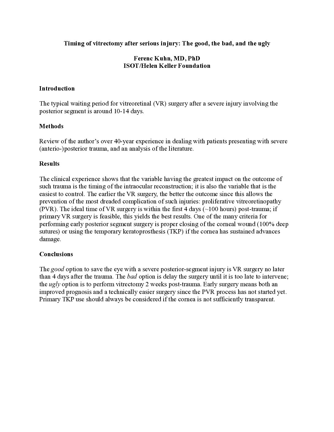 Timing of vitrectomy after serious injury: The good, the bad, and the ugly