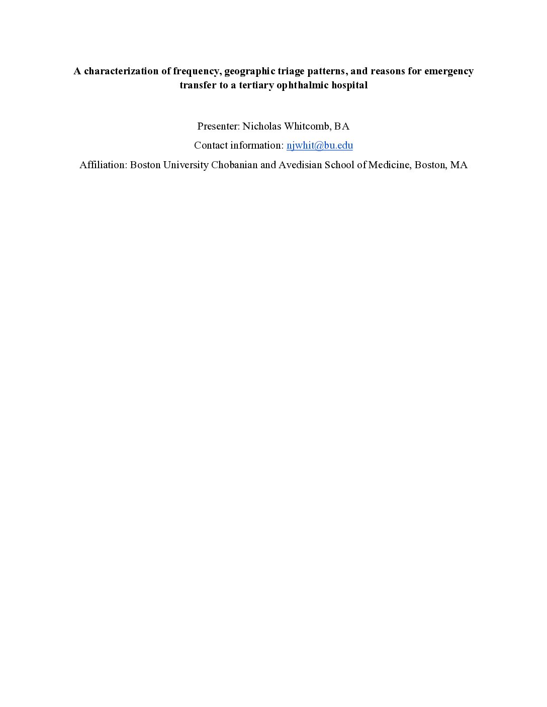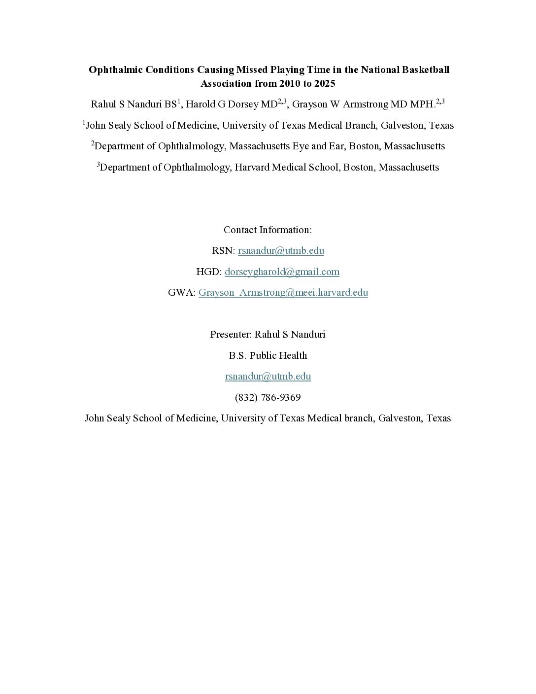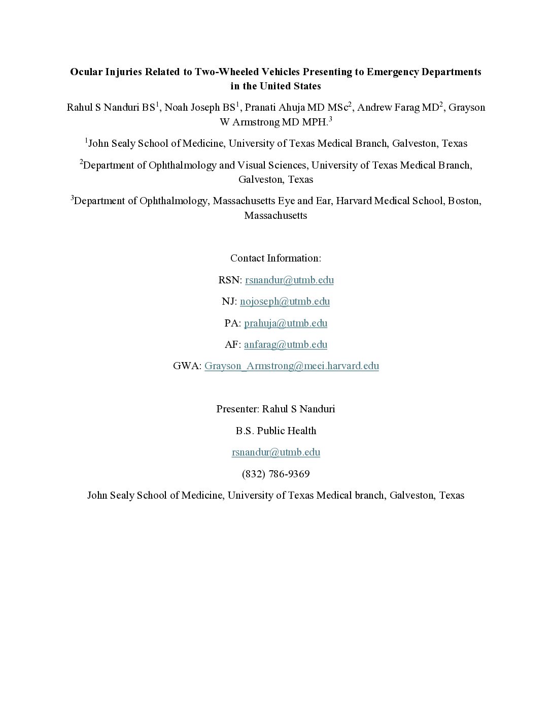 Joseph Matte, BS, Sean Teebagy, MD