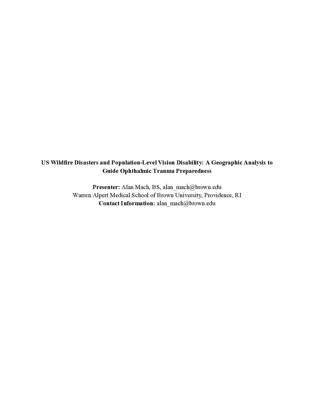 US Wildfire Disasters and Population-Level Vision Disability: A Geographic Analysis to Guide Ophthalmic Trauma Preparedness