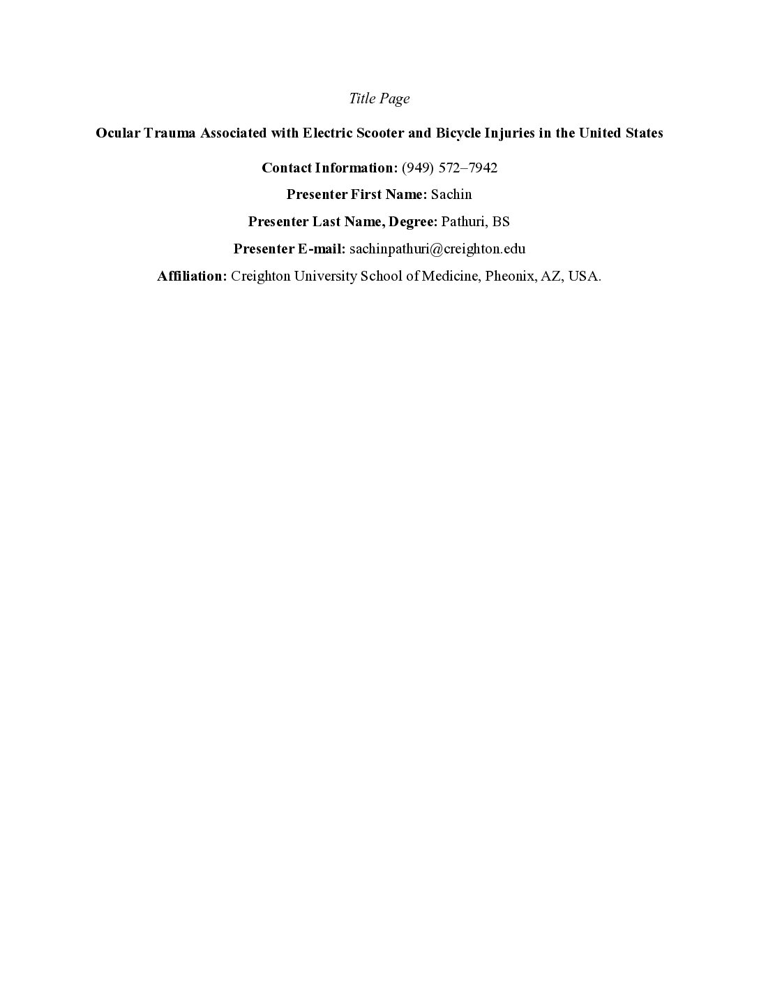 Ocular Trauma Associated with Electric Scooter and Bicycle Injuries in the United States