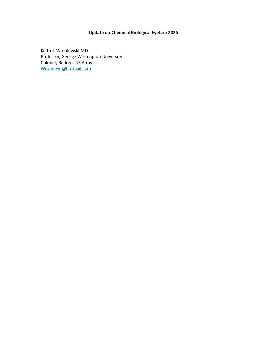 Update on Chemical-Biological Eyefare 2026
