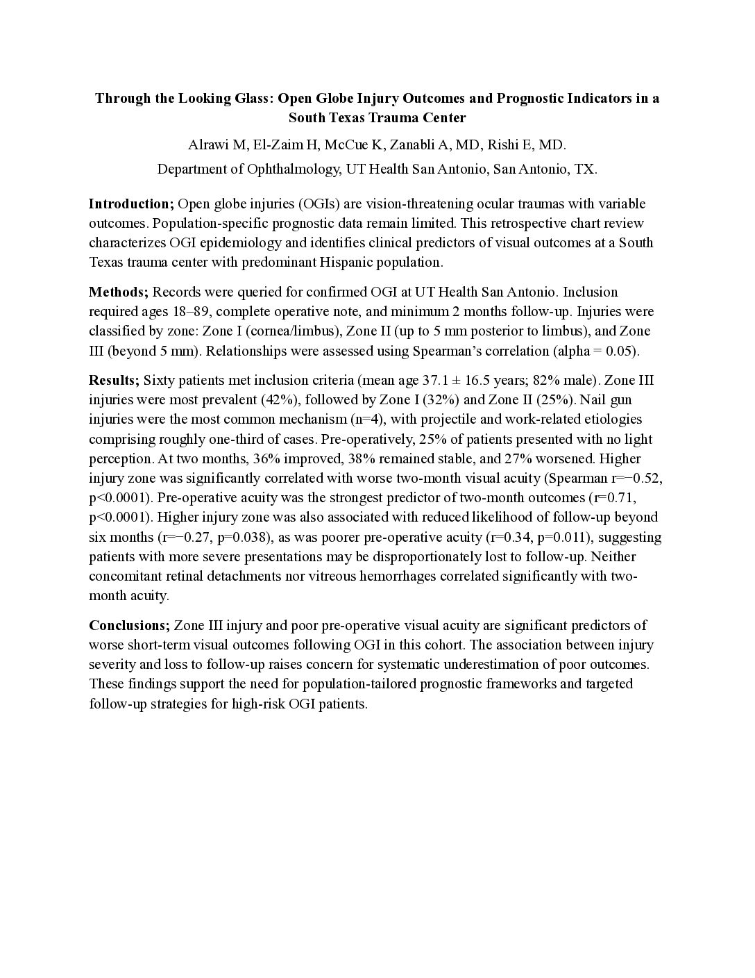 Through the Looking Glass: Open Globe Injury Outcomes and Prognostic Indicators in a South Texas Trauma Center