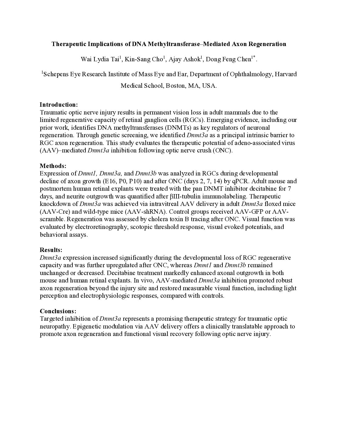 Therapeutic Implications of DNA Methyltransferase–Mediated Axon Regeneration