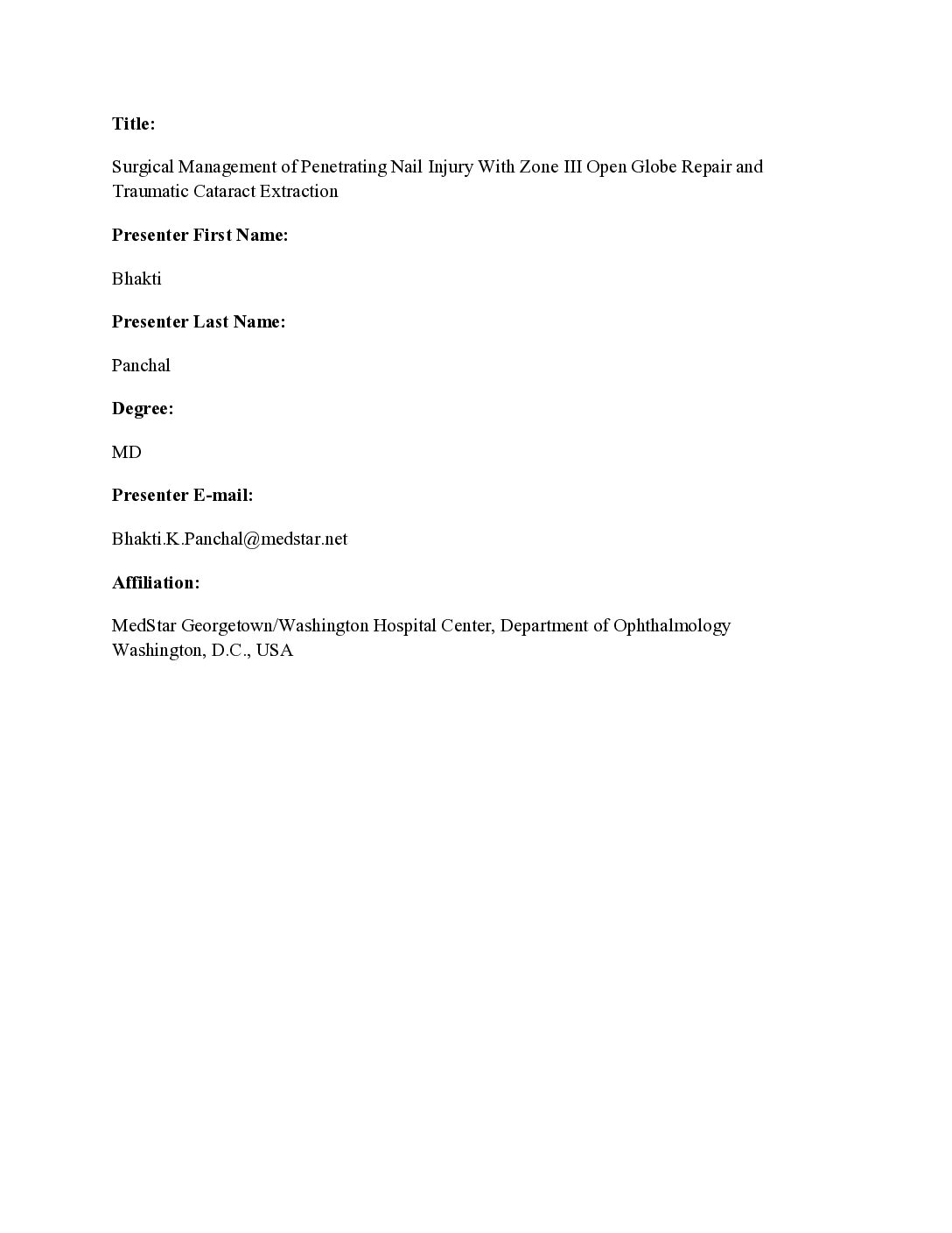 Bhakti Panchal, MD