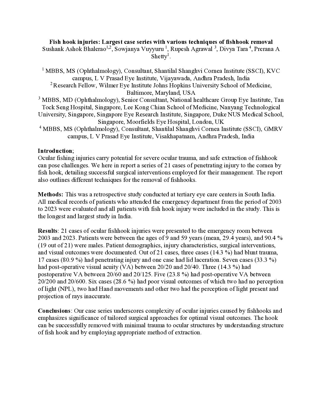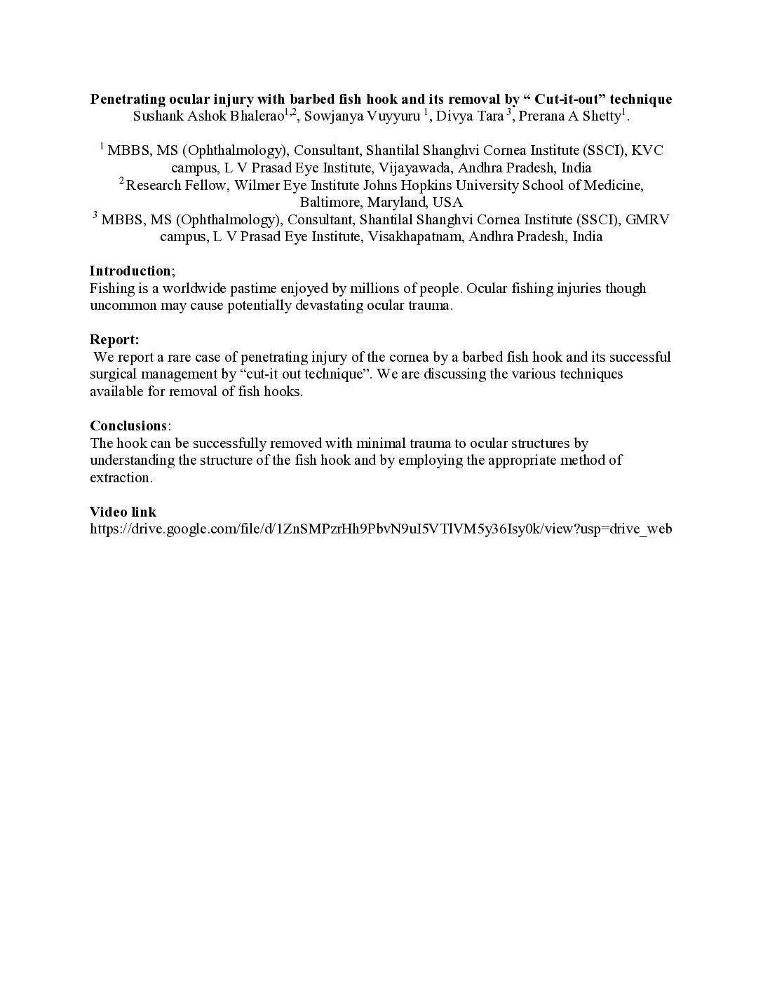 Penetrating ocular injury with barbed fish hook and its removal by “ Cut-it-out” technique