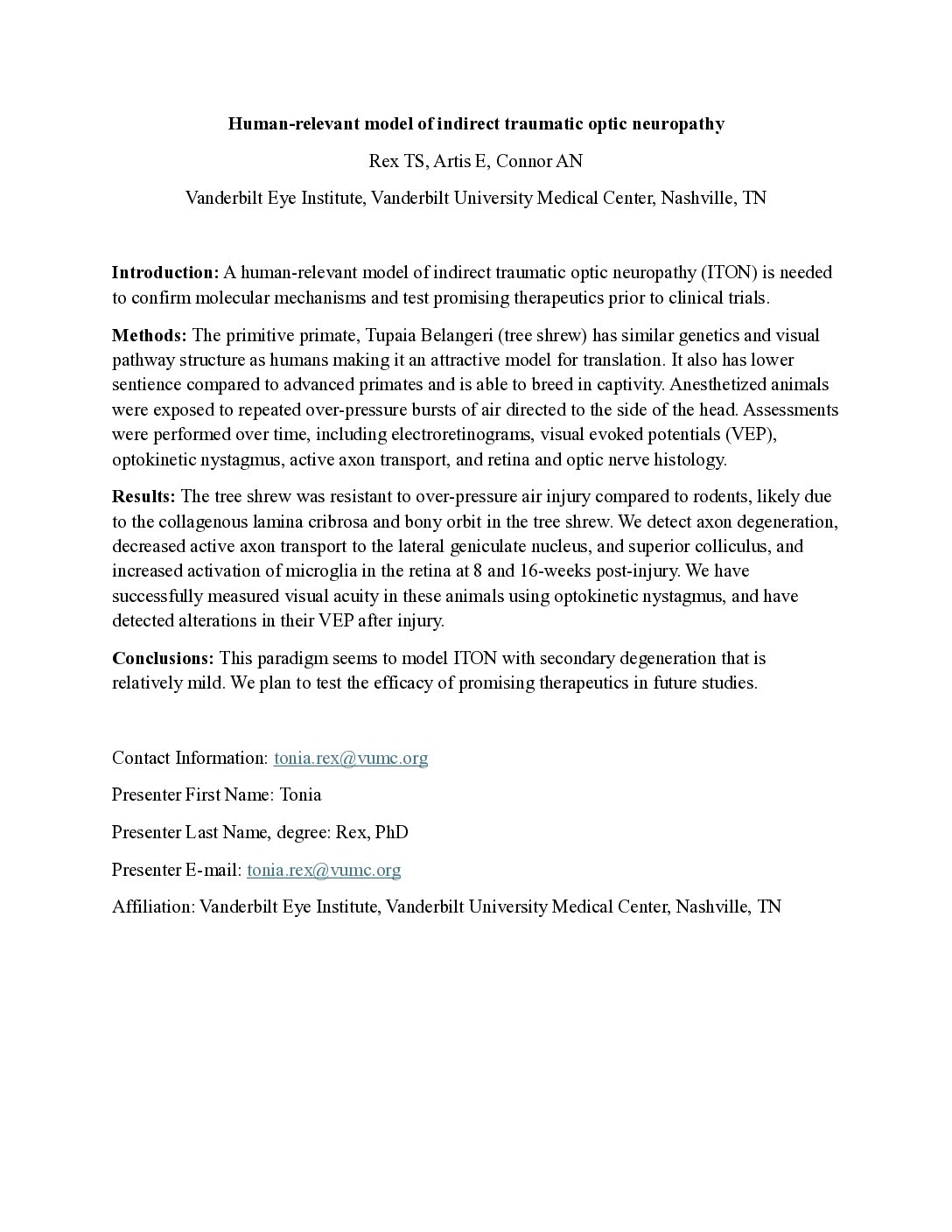 Human-relevant model of indirect traumatic optic neuropathy