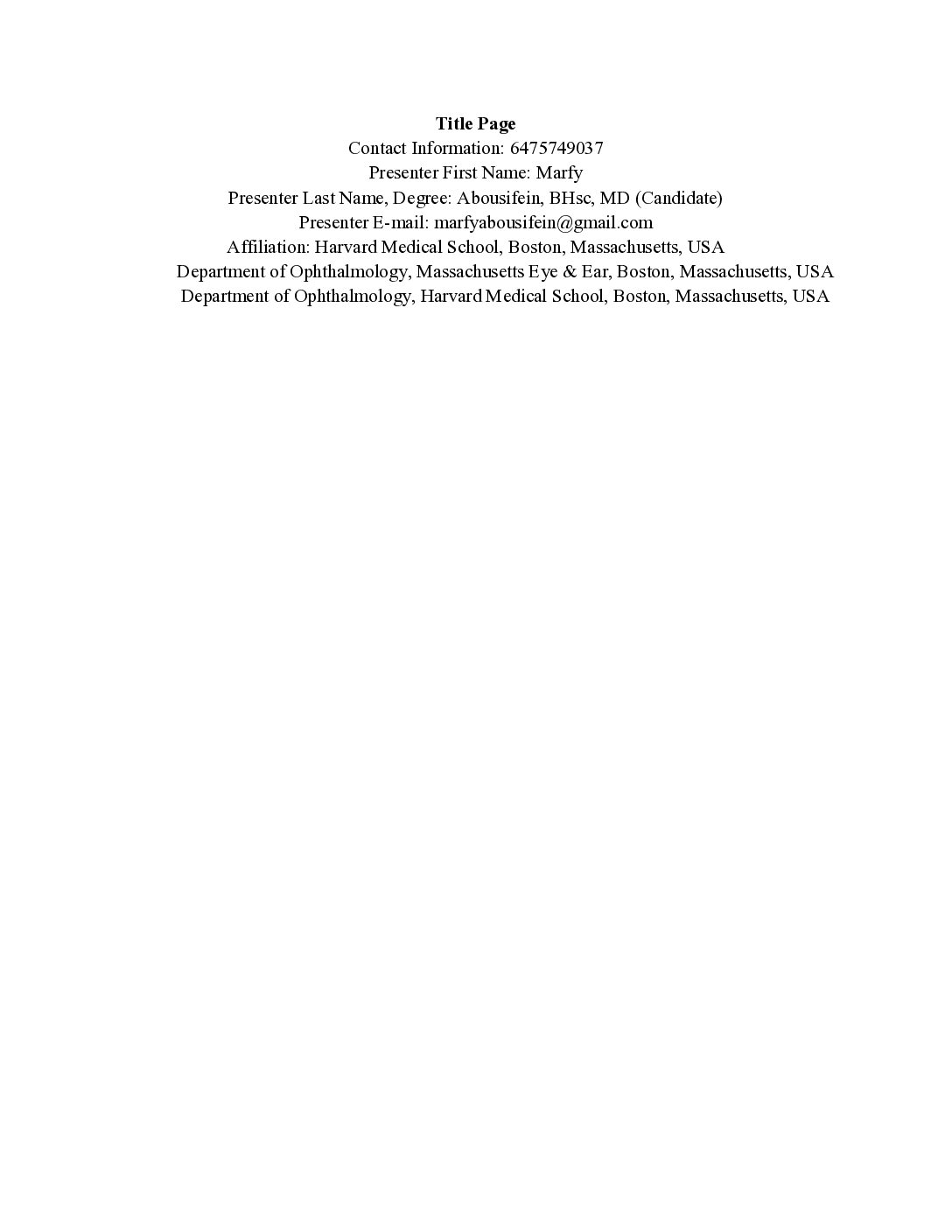 Marfy Abousifein, BHsc, MD (Candidate)
