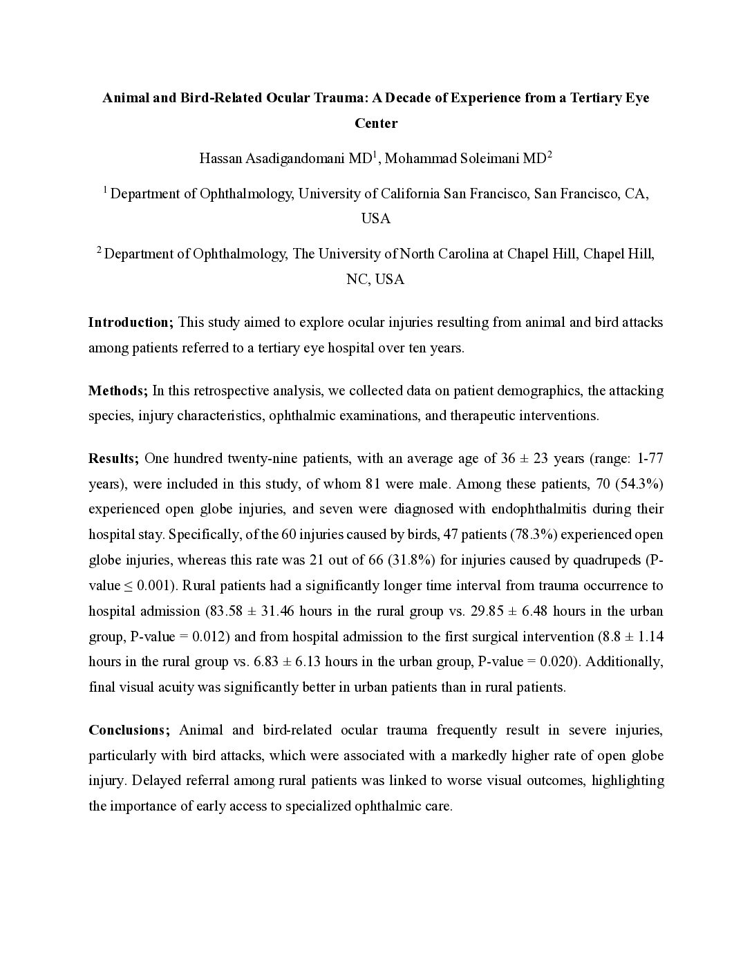 Animal and Bird-Related Ocular Trauma: A Decade of Experience from a Tertiary Eye Center