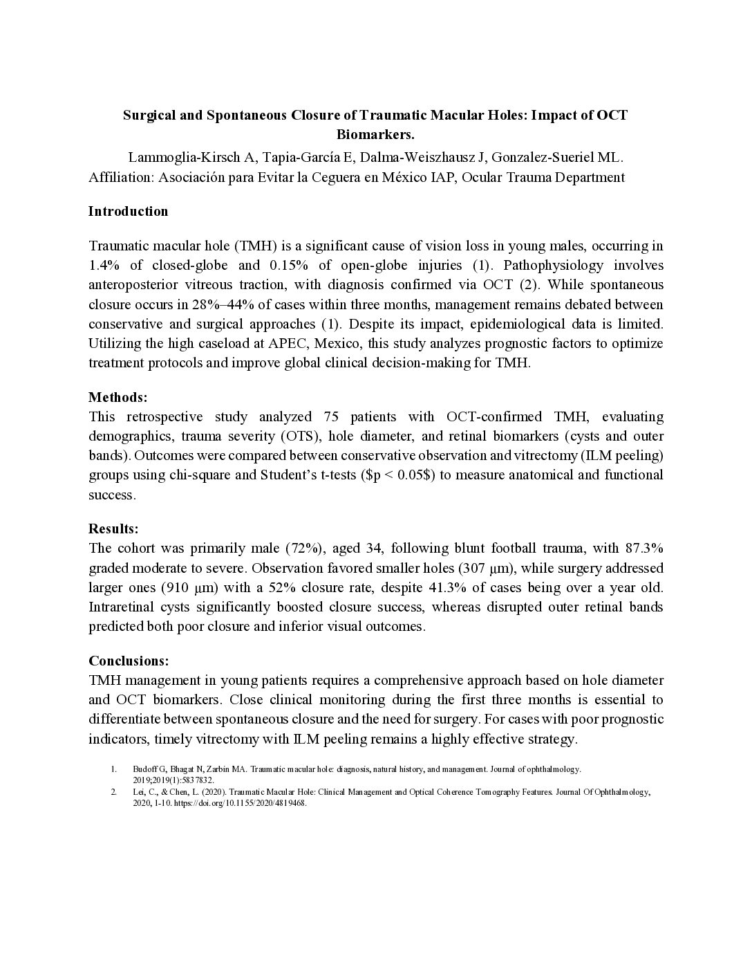 Surgical and Spontaneous Closure of Traumatic Macular Holes: Impact of OCT Biomarkers