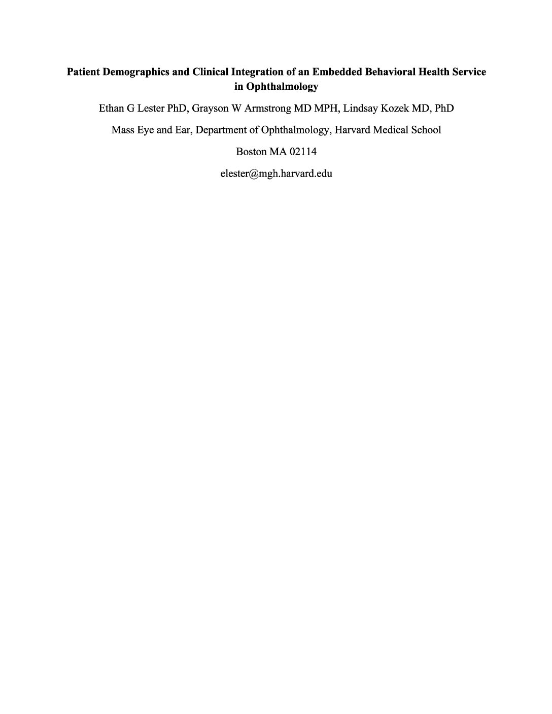 Patient Demographics and Clinical Integration of an Embedded Behavioral Health Service in Ophthalmology