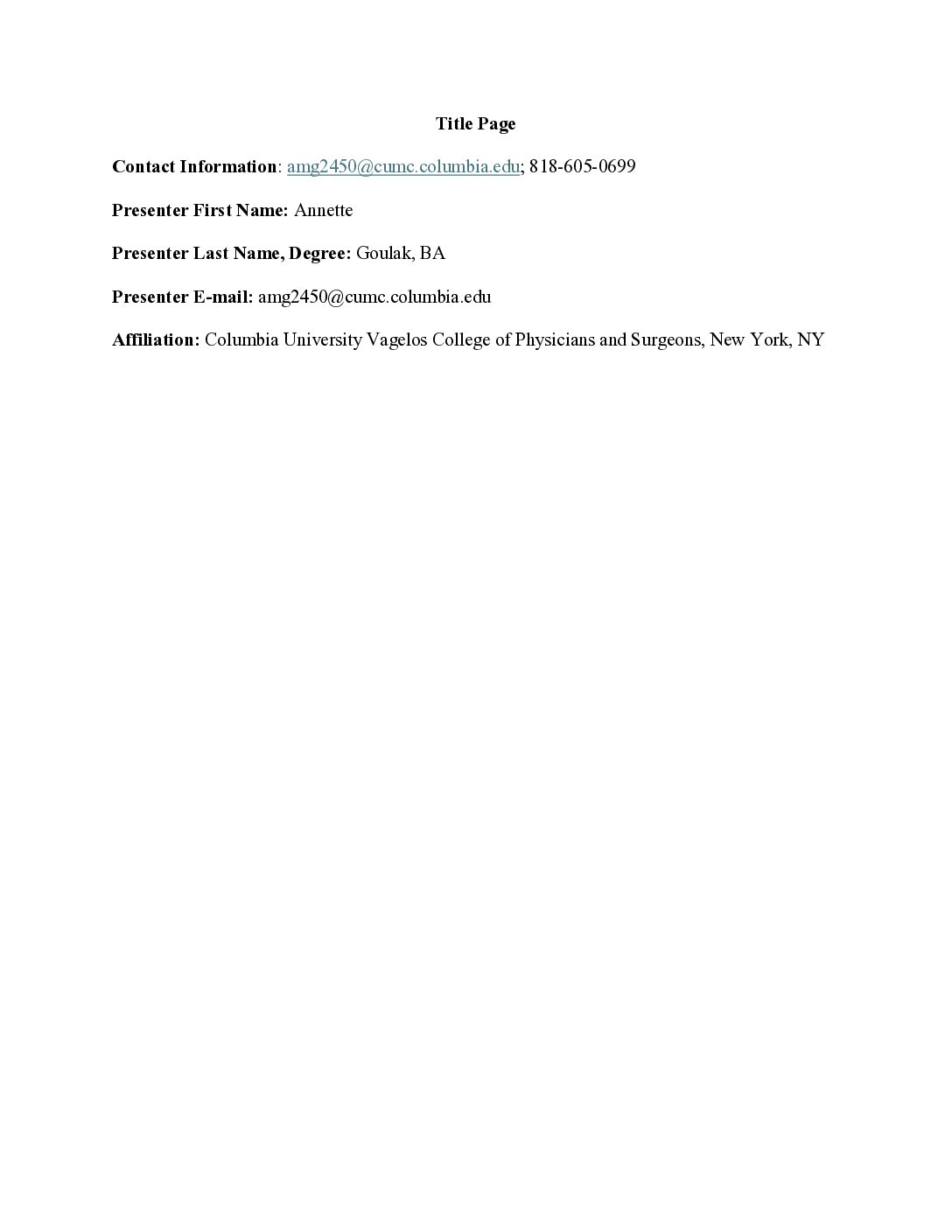 Annette Goulak, BA