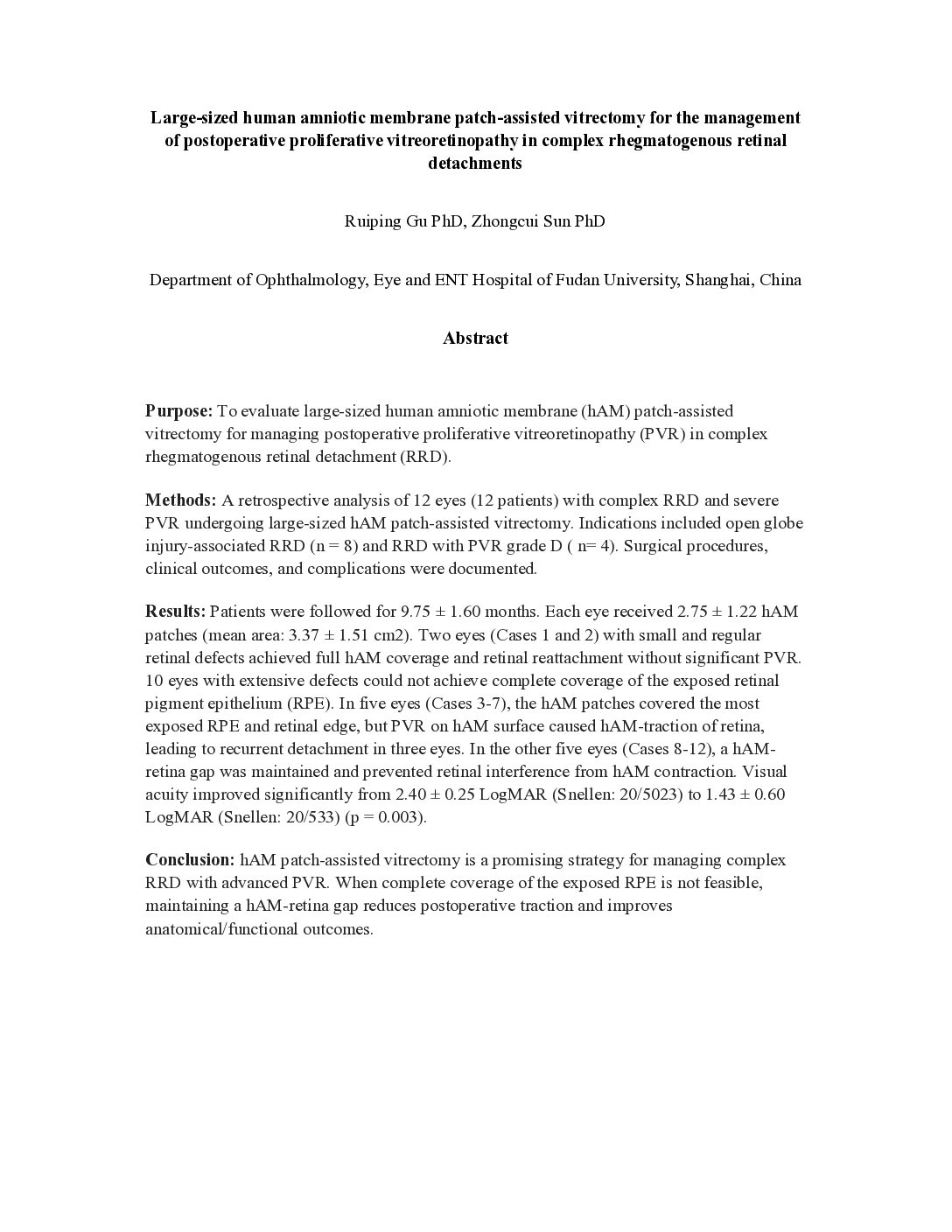 Large-sized human amniotic membrane patching-assisted vitrectomy for the management of postoperative proliferative vitreoretinopathy in complex rhegmatogenous retinal detachments