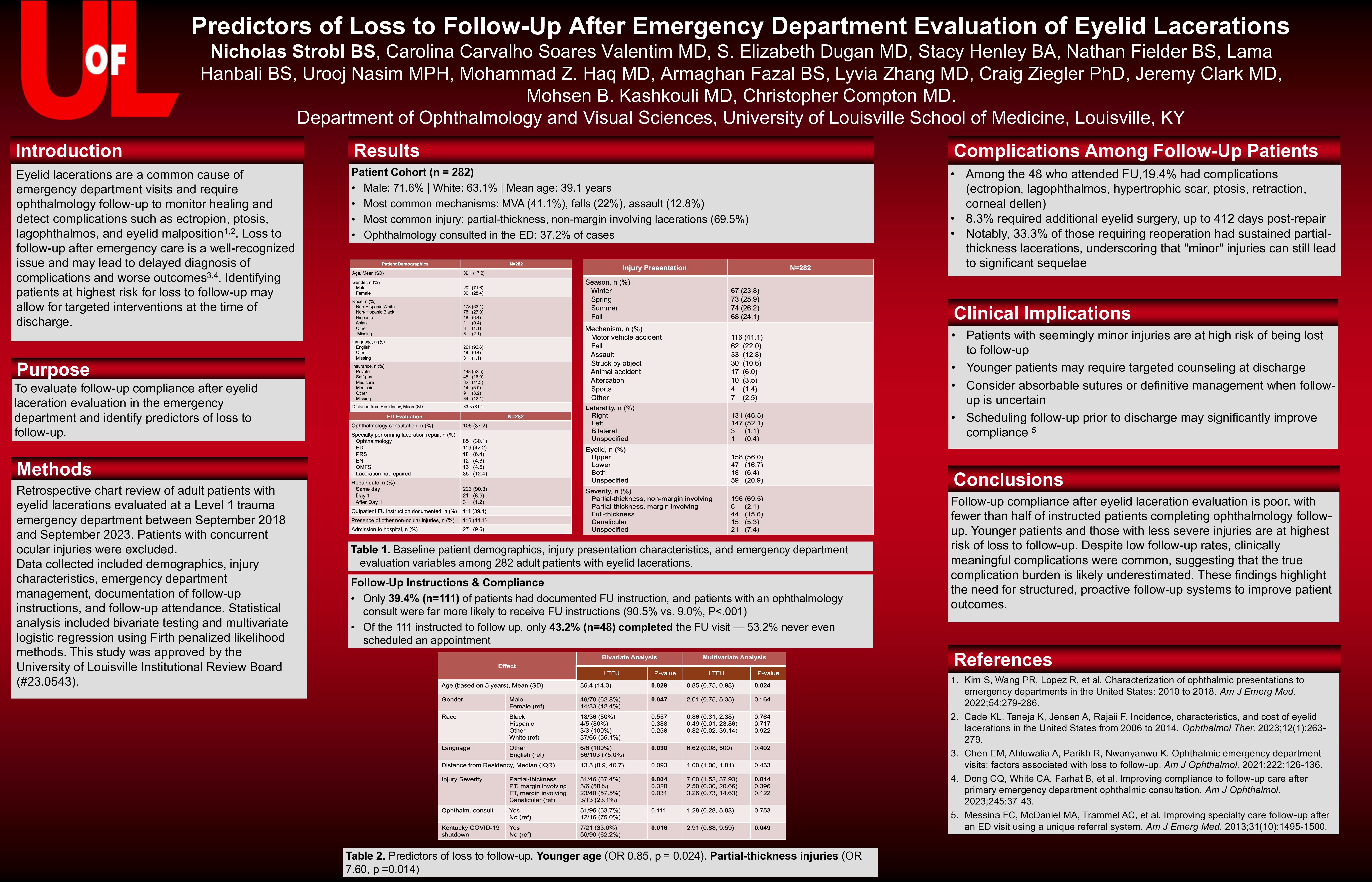 Predictors of Loss to Follow-Up After Emergency Department Evaluation of Eyelid Lacerations